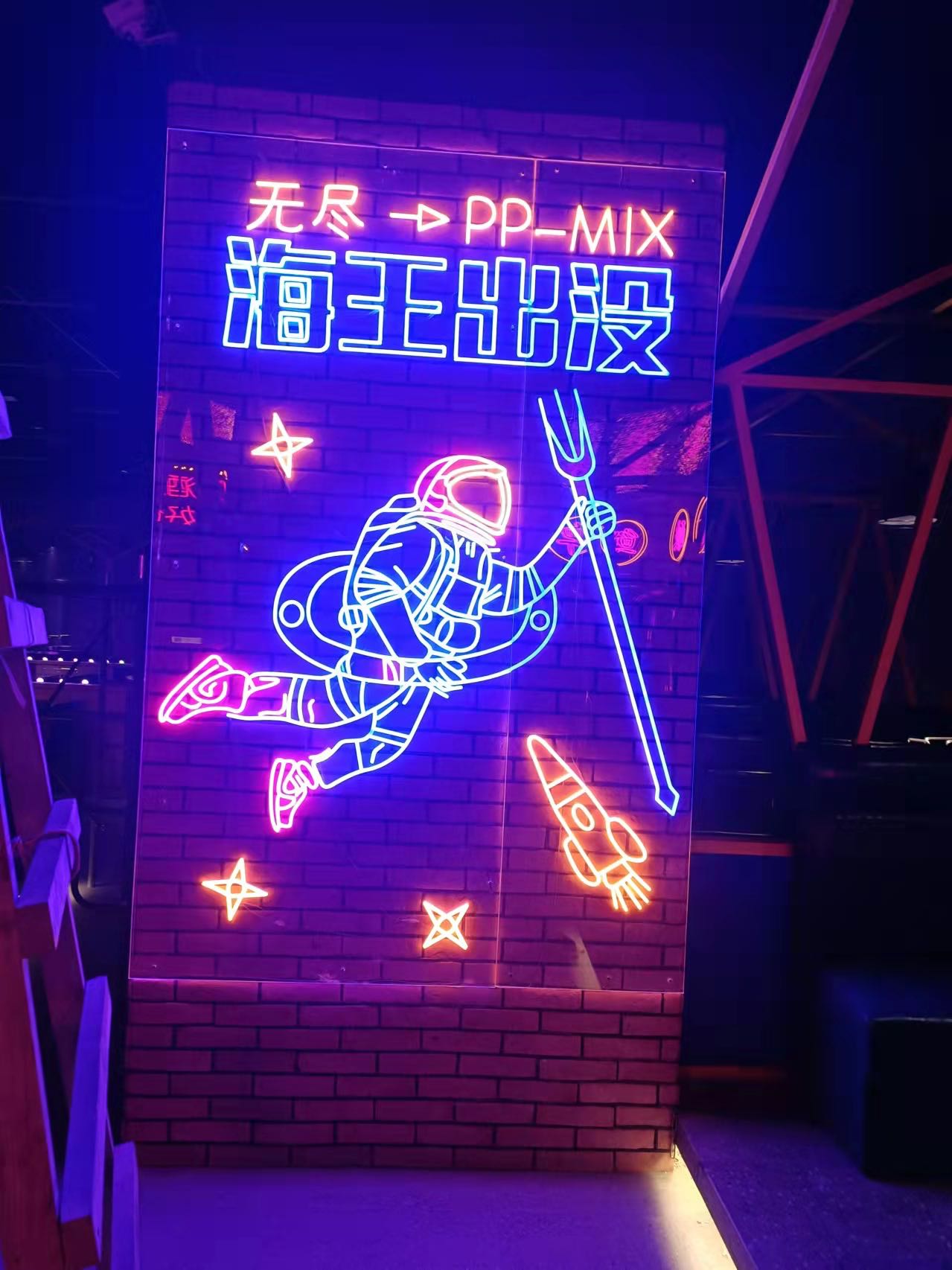 霓虹灯可设置成跳动式扫描,渐变式扫描、混色变色七种颜色扫描,能组成一副副流动的画面,似天上彩虹、象人间银河、更酷似一个梦幻世界,具有较强的动感性。