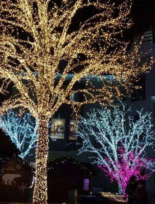 3装饰亮化。利用灯串或者灯带等灯光装饰,以及灯光挂饰搭配使用,将树木的轮廓展示出来,此亮化方式使树木更具美感,样式选择性也更多。